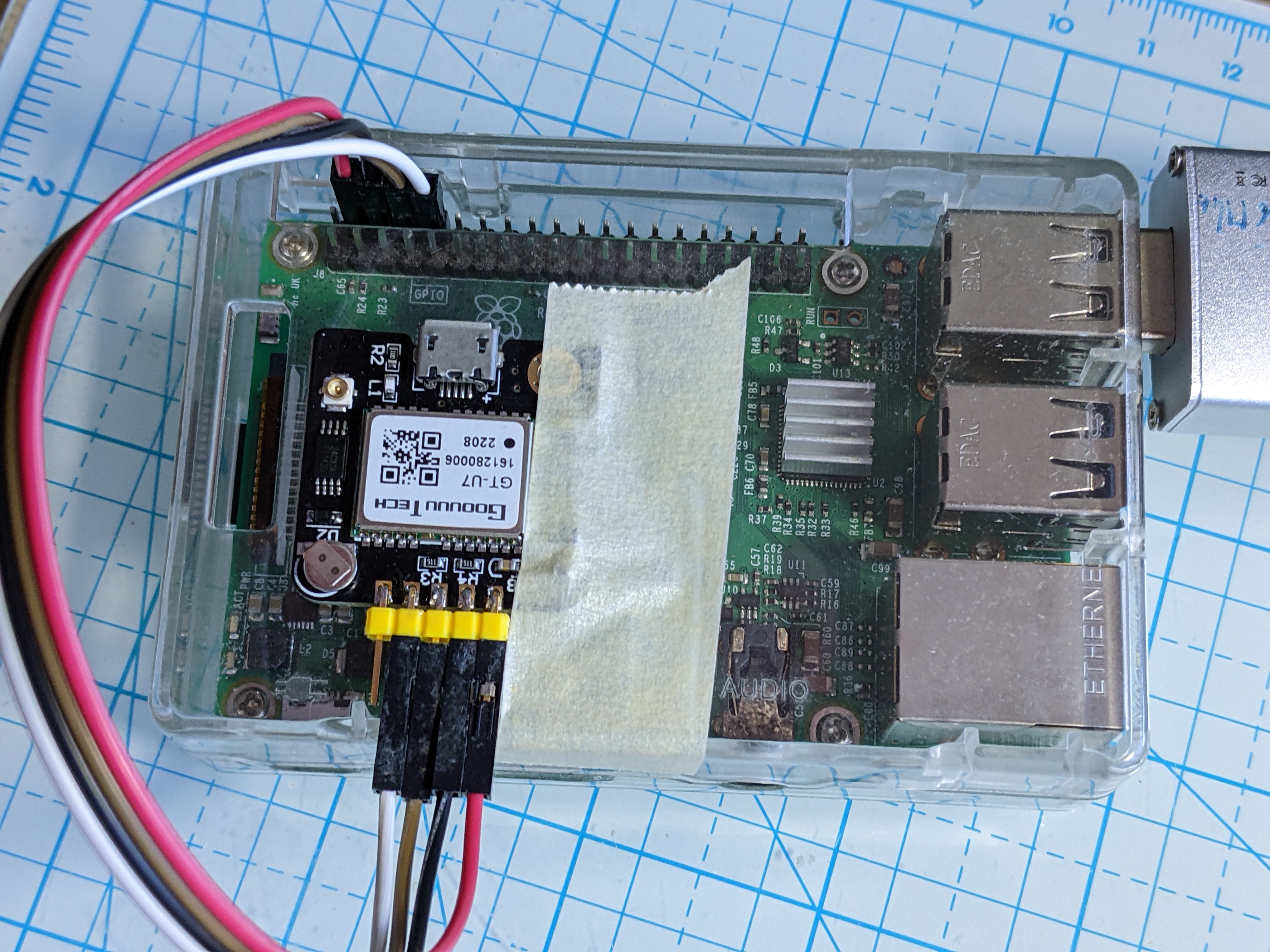 <figure><img src="https://2642021313-files.gitbook.io/~/files/v0/b/gitbook-x-prod.appspot.com/o/spaces%2FGrf8Wg5oUFTJbWHxHdF7%2Fuploads%2FnbfwQIYcglJEnQbXOtYk%2FPXL_20221030_173643526.jpg?alt=media&#x26;token=23624902-6ec9-4b92-8233-45f1667a851d" alt=""><figcaption><p>GPS connected to rPi3 using serial cable for illustration (this is not a permanent install...)</p></figcaption></figure>